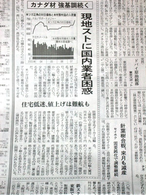 カナダ材(米ツガ)の価格上昇や