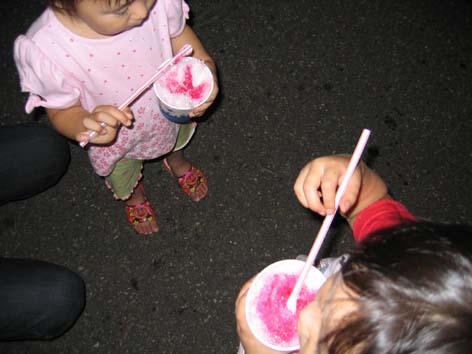 祭り会場(旧浦川原役場前)でカキ氷を食す。