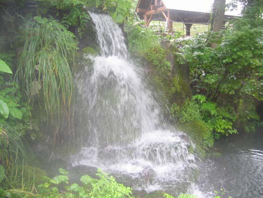 駐車場側のニジマスがたくさんはなたれている人口池の